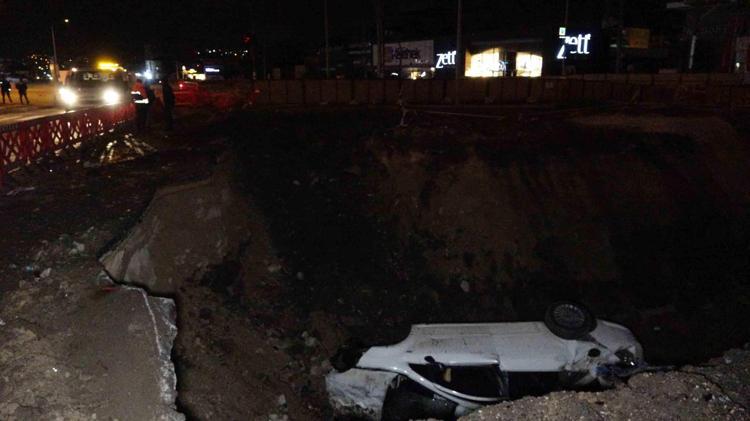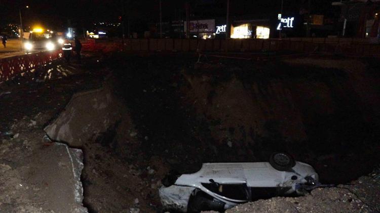 Semih Ünal’ın kontrolünü kaybettiği 16 AOD 555 plakalı otomobil, Emek-YHT Gar-Şehir Hastanesi metro hattı yapım çalışması nedeniyle kazılan 3 metre derinlikteki çukura düştü.