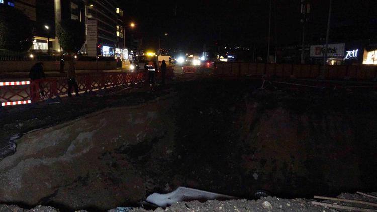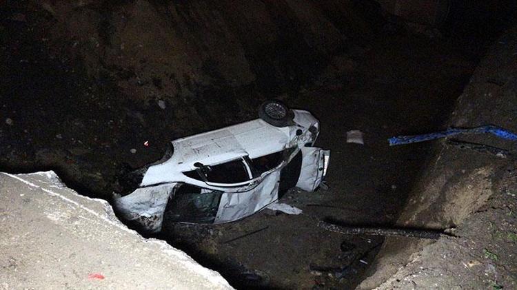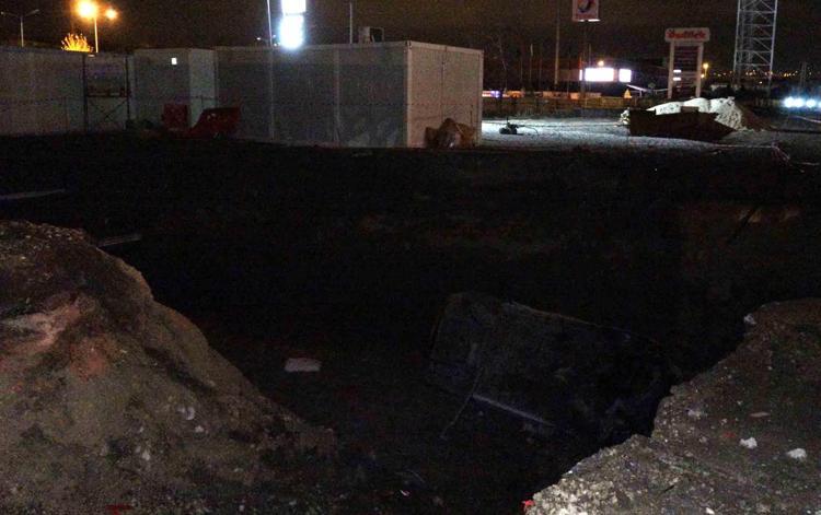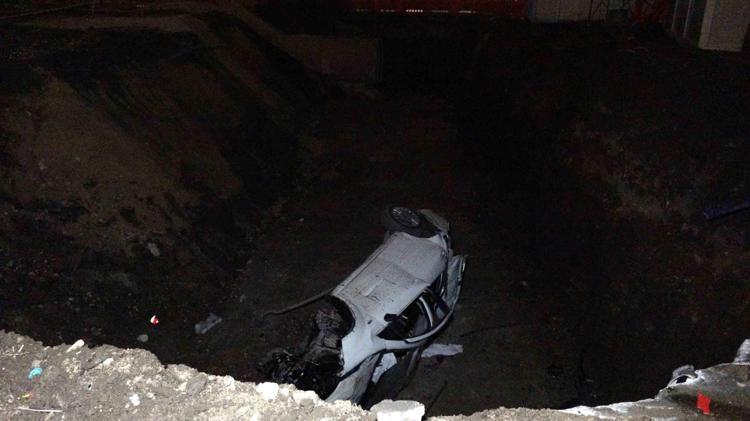Metro inşaatı nedeniyle kazılan çukura düşen otomobilin sürücüsü yaralandı