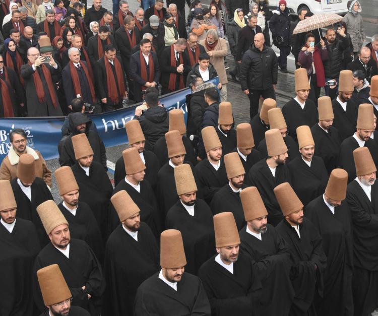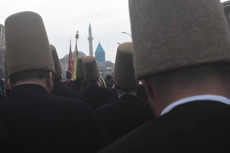 Konya'da Mevlana'nın ölüm yıl dönümü nedeniyle düzenlenen 'Hazreti Mevlana'nın 752'nci Vuslat Yıl Dönümü Uluslararası Anma Törenleri', Konya'da 'Huzur Vakti' temalı yürüyüş ile başladı.
