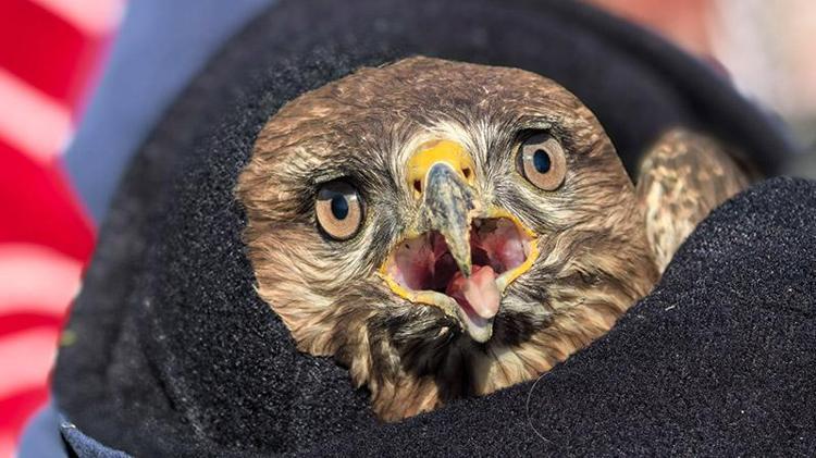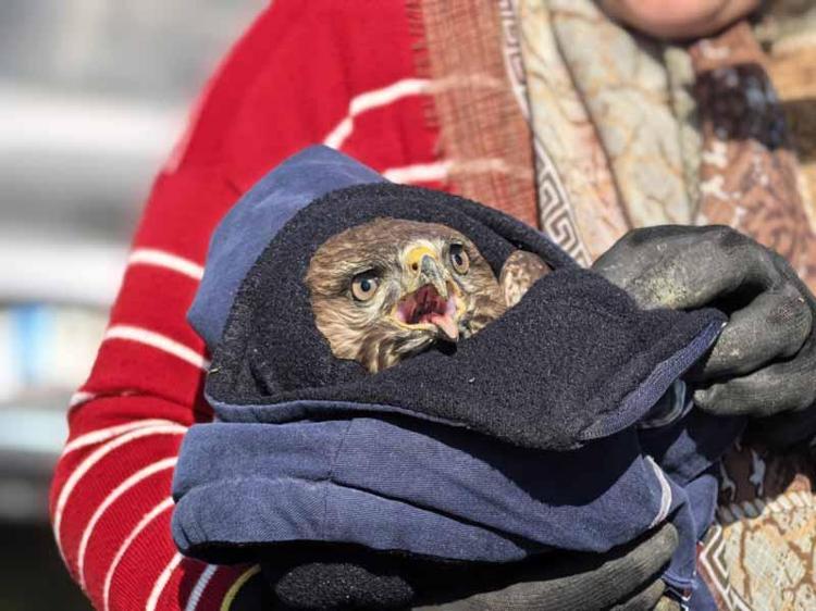 Mevsimlik işçilerin bulduğu yaralı şahin, tedaviye alındı