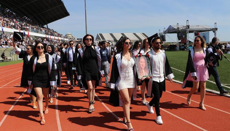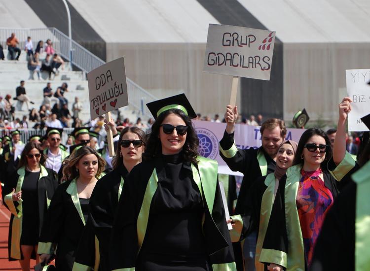 Geçit töreninde öğrenciler, Kahramanmaraş merkezli depremlerde hayatını kaybeden İktisadi ve İdari Bilimler Fakültesi Uluslararası İlişkiler Bölümü 4'üncü sınıf öğrencisi Ayşe Çinkılıç, Güzel Sanatlar Tasarım ve Mimarlık Fakültesi Peyzaj Mimarlığı Bölümü 4'üncü sınıf öğrencisi Gülistan Aktürk'ü anıp, fotoğraflarını taşıdı.