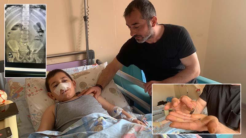 Gündoğdu Mahallesi'nde yaşayan Orhan-Elif Kalay çiftinin ilkokul 1’inci sınıfta öğrenim gören oğulları Miraç, okulda oyun oynarken mıknatıslı bilyeleri yuttu.