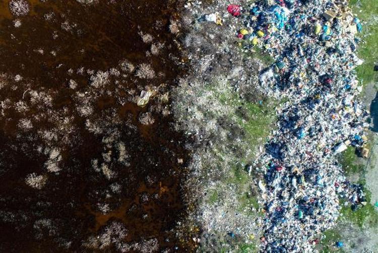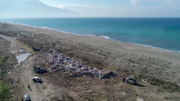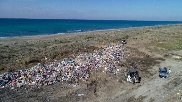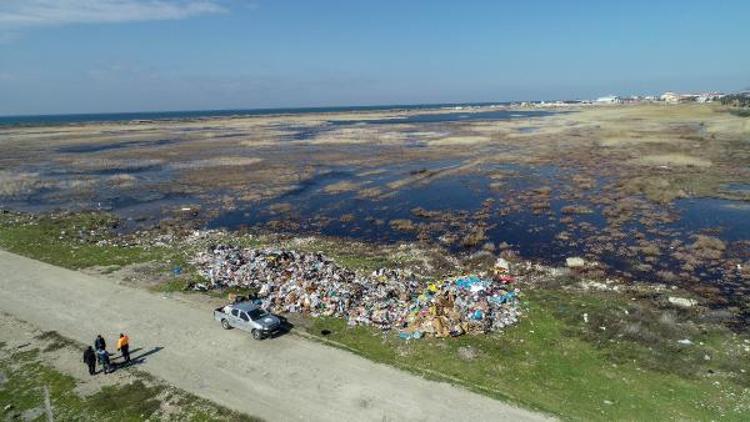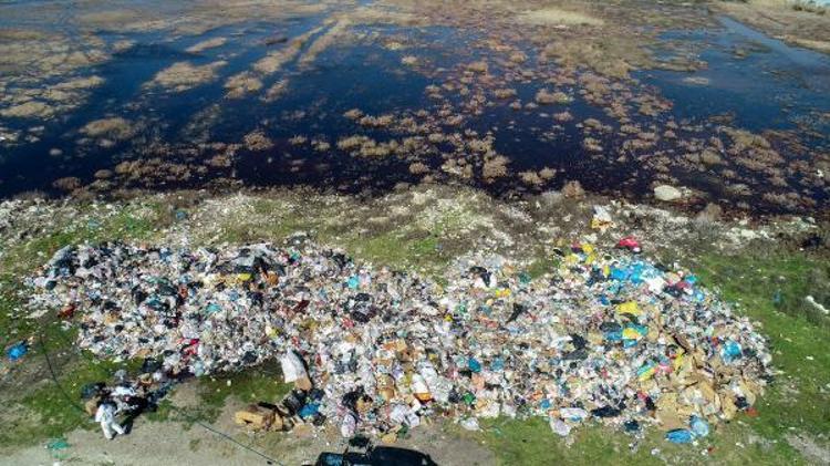 Öte yandan kumsal ile kuşların olduğu bölgeye dökülen çöp ve molozlar, dronla görüntülendi.
