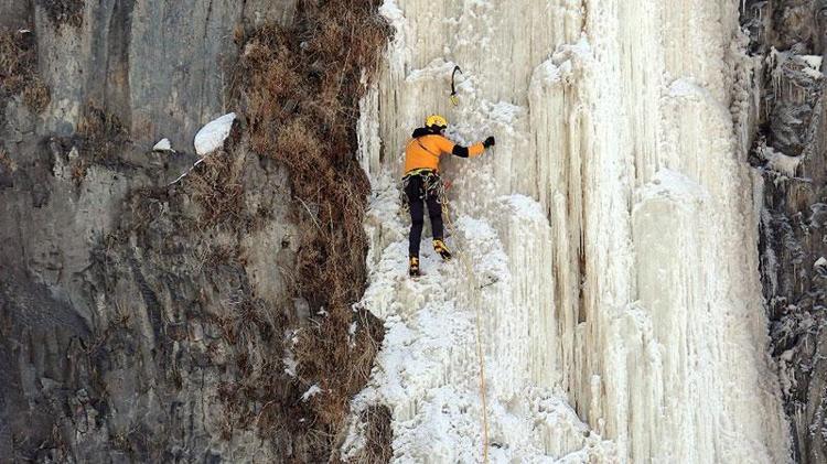 Milli dağcı, 50 metrelik buz şelalesine tırmandı