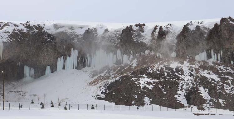 Diyadin Kaymakamı ve Belediye Başkan Vekili Alper Balcı'nın etkinliğe davet ettiği milli dağcı Tunç Fındık ve ekibi, kanyonu gezip uygun rotaları tespit ettikten sonra 50 metre yüksekliğindeki buz sarkıtlarına tırmandı.