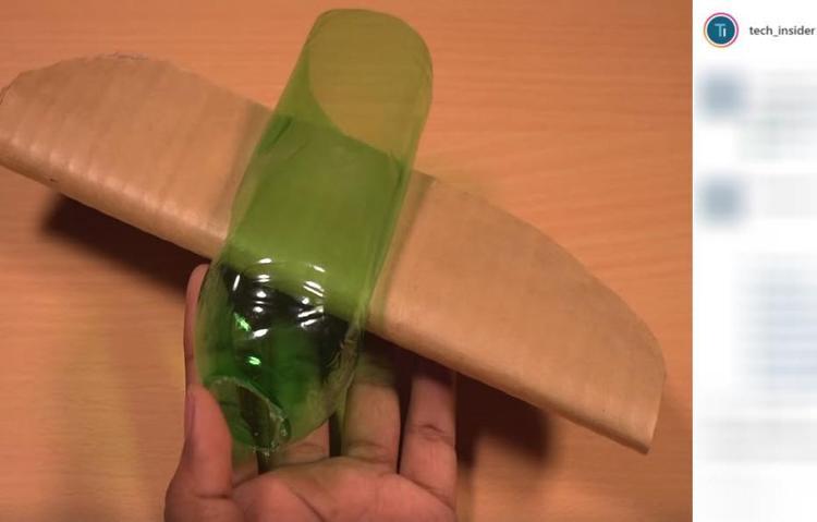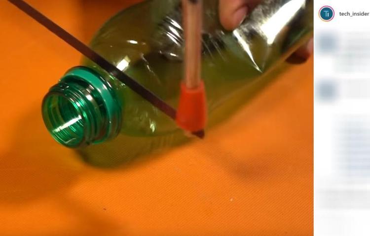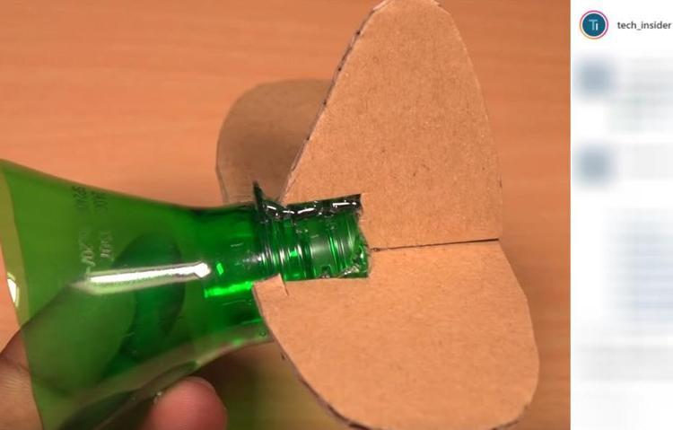 Şimdi de pet şişenin ortasındaki bölümden kartonu içeri sokuyoruz.