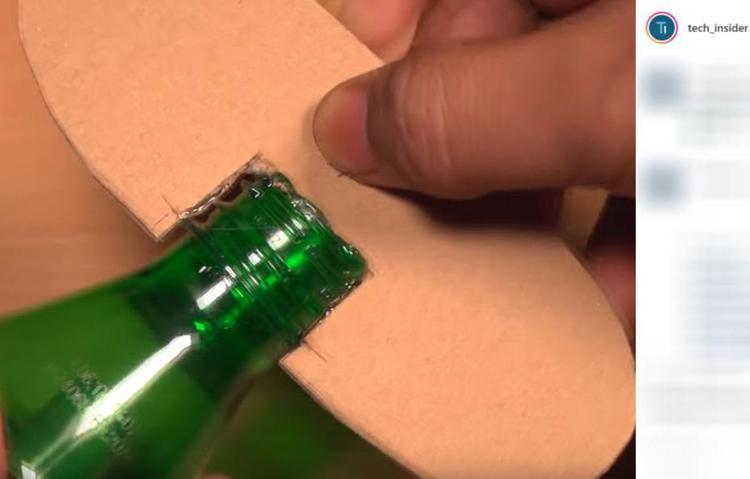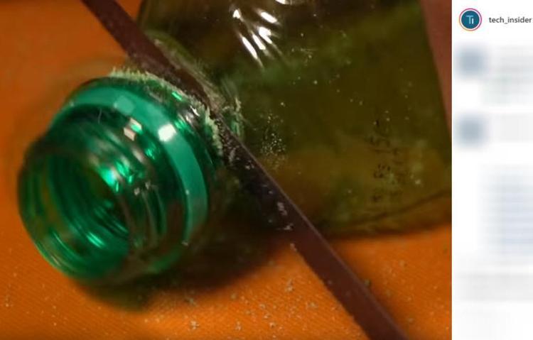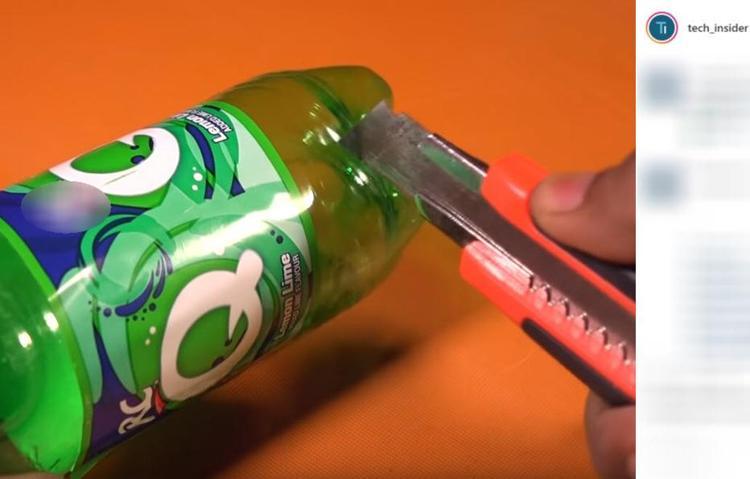 Sonra bu şekilde falçatayla şişeyi kesin.