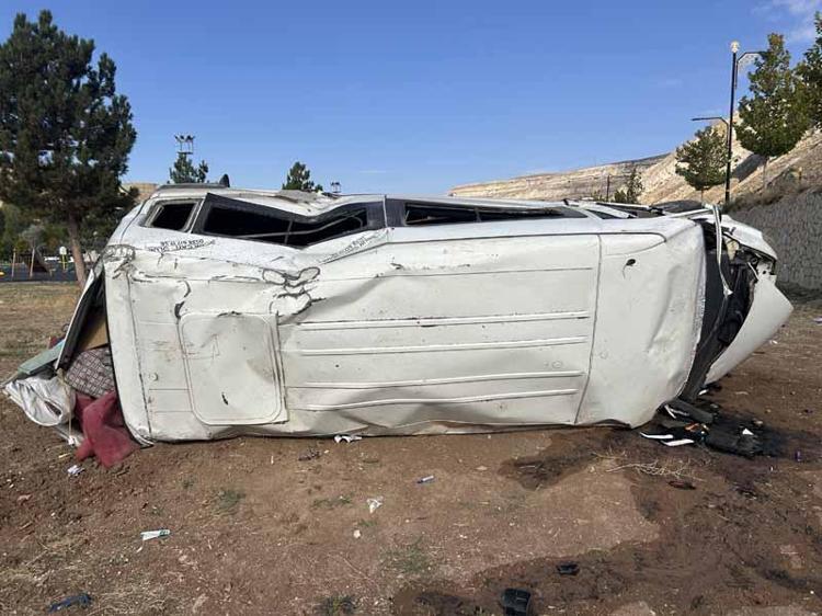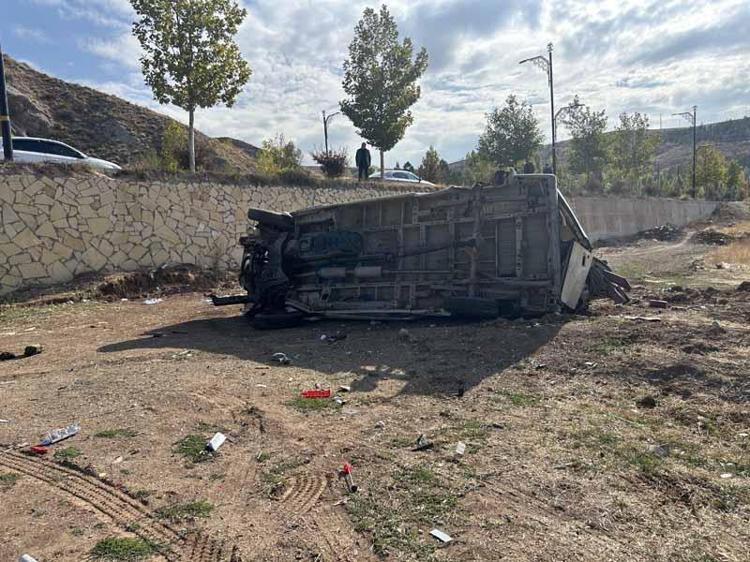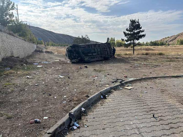 Sivas'ta, minibüsün aydınlatma direği ve ağaca çarptıktan sonra 3 metre yüksekliğindeki istinat duvarından düştüğü kazada 1'i ağır, 4 kişi yaralandı.