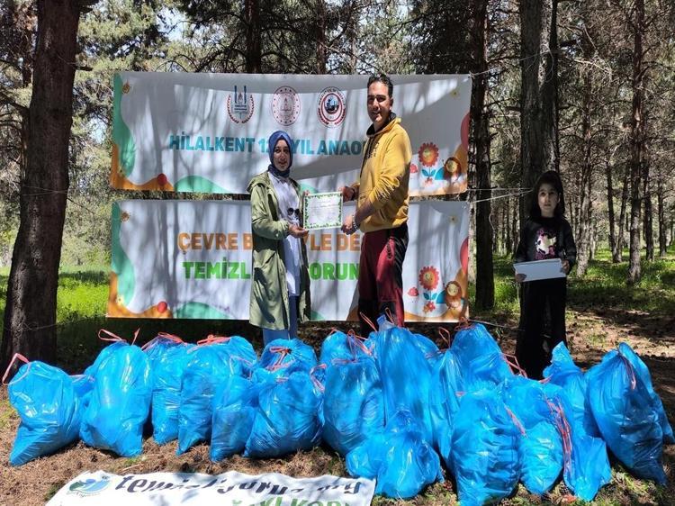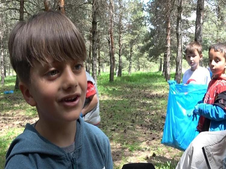 Çöp dolu poşetleri gösteren Hafsa Tuana Şahin, "Büyüklerimiz sakın çevreyi kirletmeyin, küçükler olarak temizliyoruz" derken; 2 poşet çöp topladığını belirten Ömer Asaf Ay, "Doğayı tedavi etmek için buradayız. 2 poşet çöp topladım. Sigara paketleri, içecek kutuları vardı" diye konuştu.