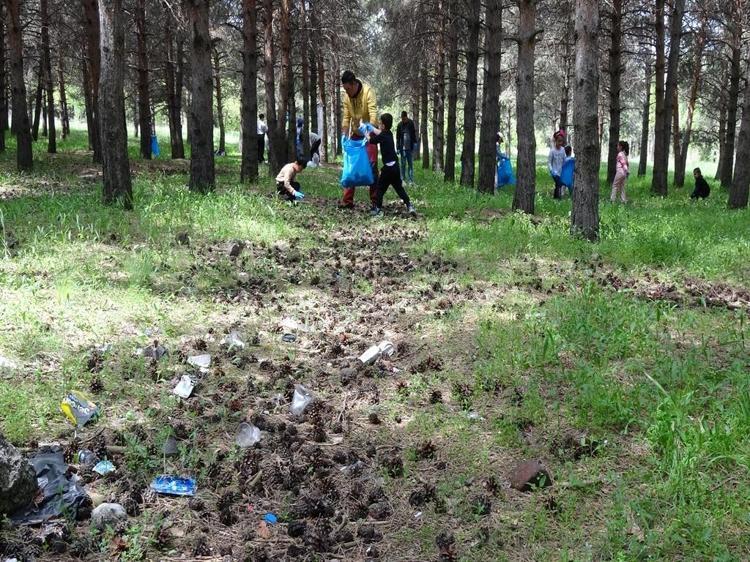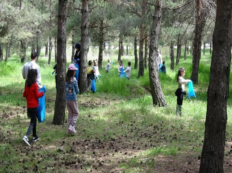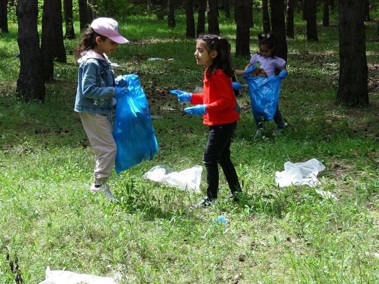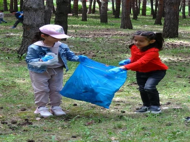 Erzurum'da anaokul öğrencileri, Atatürk Üniversitesi kampüsü içerisindeki ağaçlık alanda çöp toplayıp, çevre temizliği yaptı. Naylon, sigara paketi, içecek kutusu gibi atıklardan oluşan çöpleri poşetlere dolduran öğrencilerden Ömer Asaf Ay, "Doğayı tedavi etmek için buradayız. 2 poşet çöp topladım. Sigara paketleri, içecek kutuları vardı" dedi.