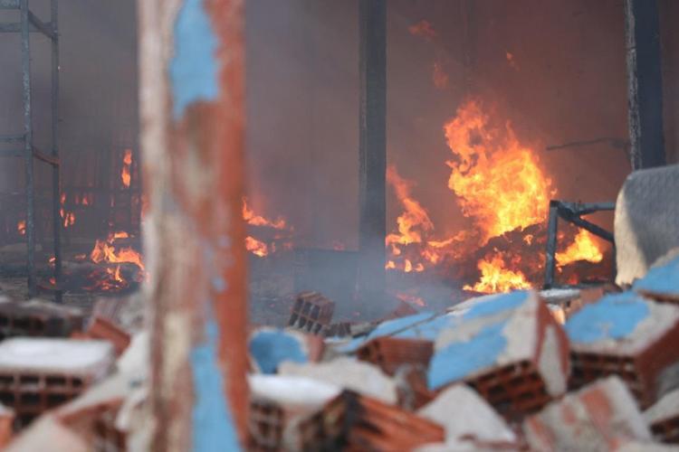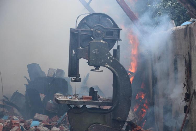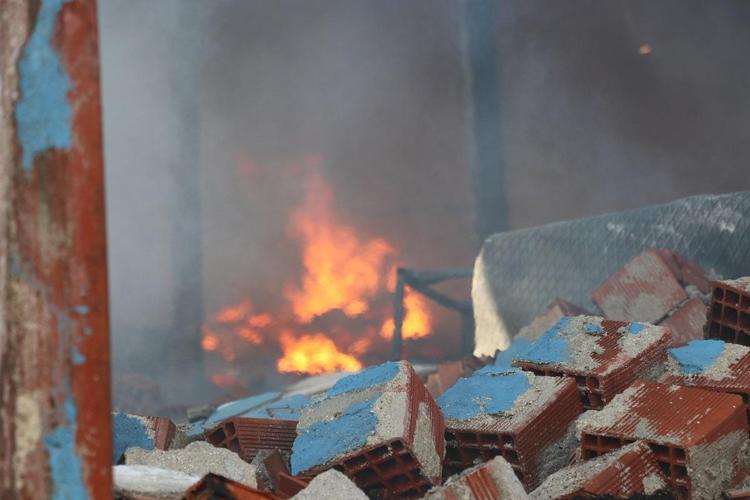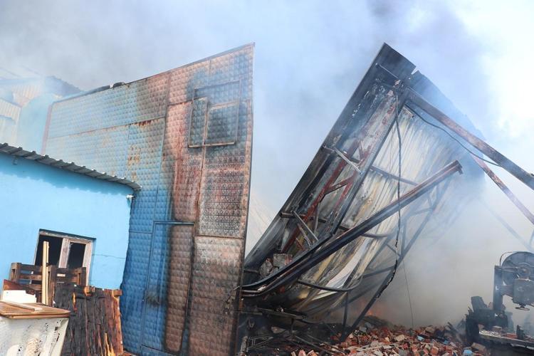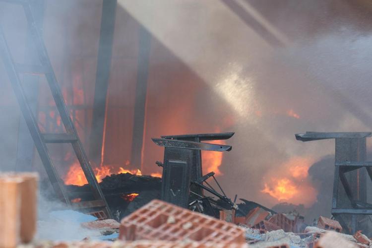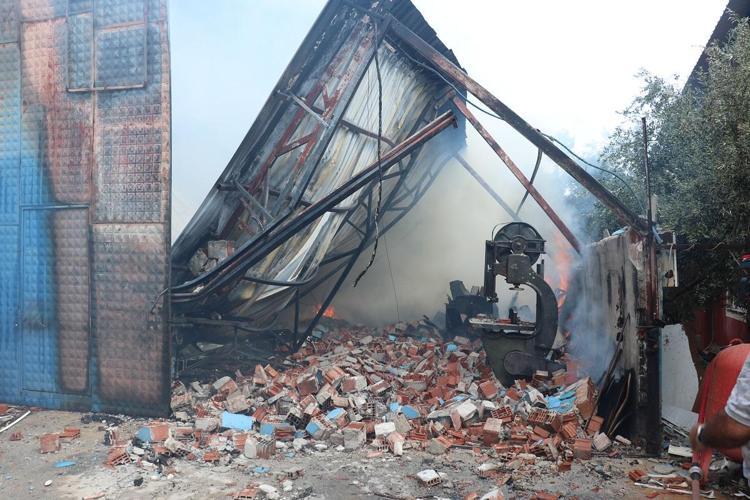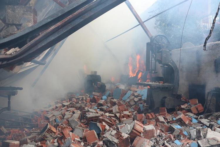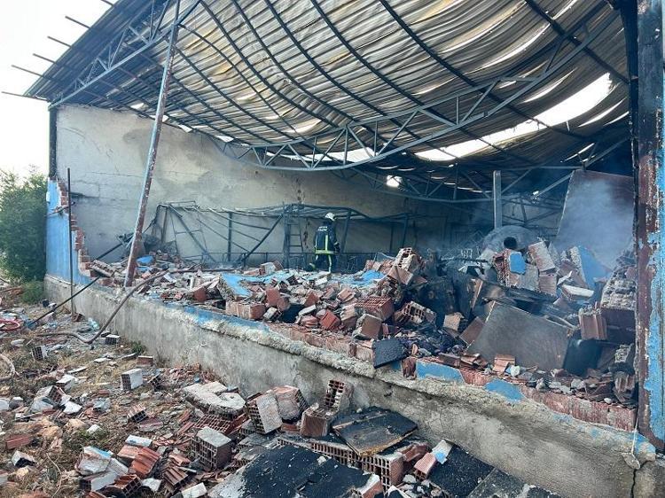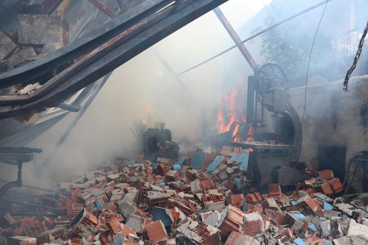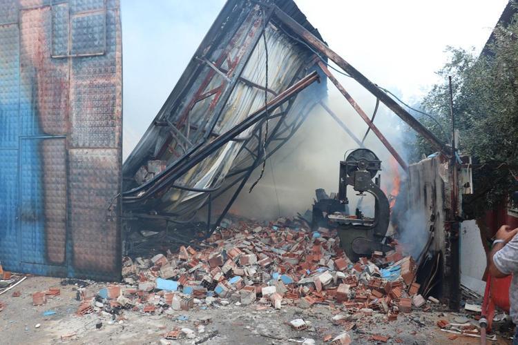 Mobilya fabrikası yangınında itfaiyeciler çöken duvarın altında kalmaktan son anda kurtuldu