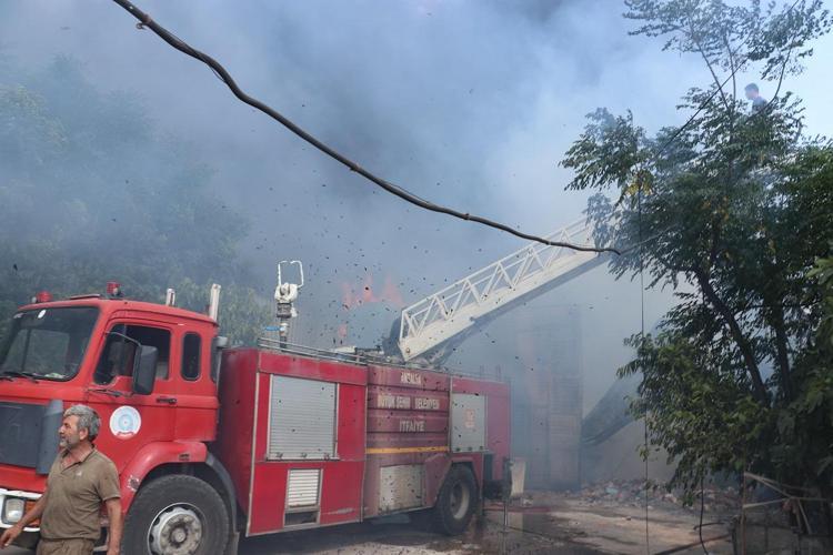 Yangına müdahale sırasında fabrikanın bir duvarı aniden çöktü. O an bölgede bulunan itfaiye görevlileri, duvarın altında kalmaktan son anda kurtuldu.