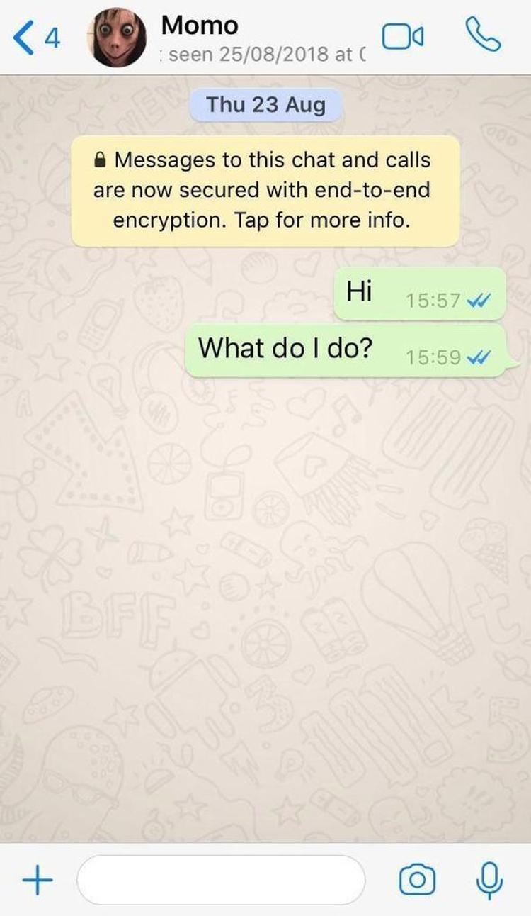 Korkunç yüzüyle ne olduğu anlaşılmayan Momo, WhatsApp üzerinden kullanıcılara şiddet içerikli fotoğraflar veya tehdit içerikli mesajlar gönderiyor.