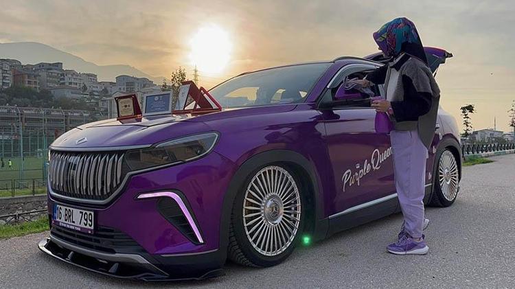 Bursa'da Firdevs Çakar (40), 10 yıl önce tutku haline getirdiği mor rengi hayatına işledi. Ev anahtarından, el bezine kadar her eşyası mor olan Çakar, yeni aldığı otomobilini de kahverengiden mora dönüştürdü. Çakar, otomobilinin sadece dış kaplamasını değil, içini de mor renkli aksesuarlarla donattı.