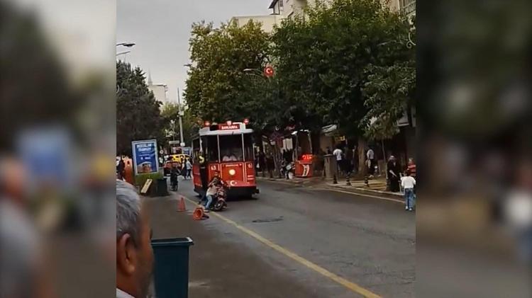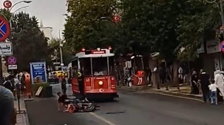 Tramvayın önüne devrilen motosikleti fark eden vatmanının ani refleksi olası kazayı önlendi. Yere düşen iki genç, polis ekipleri gelmeden motosikletlerini kaldırıp olay yerinden uzaklaştı.