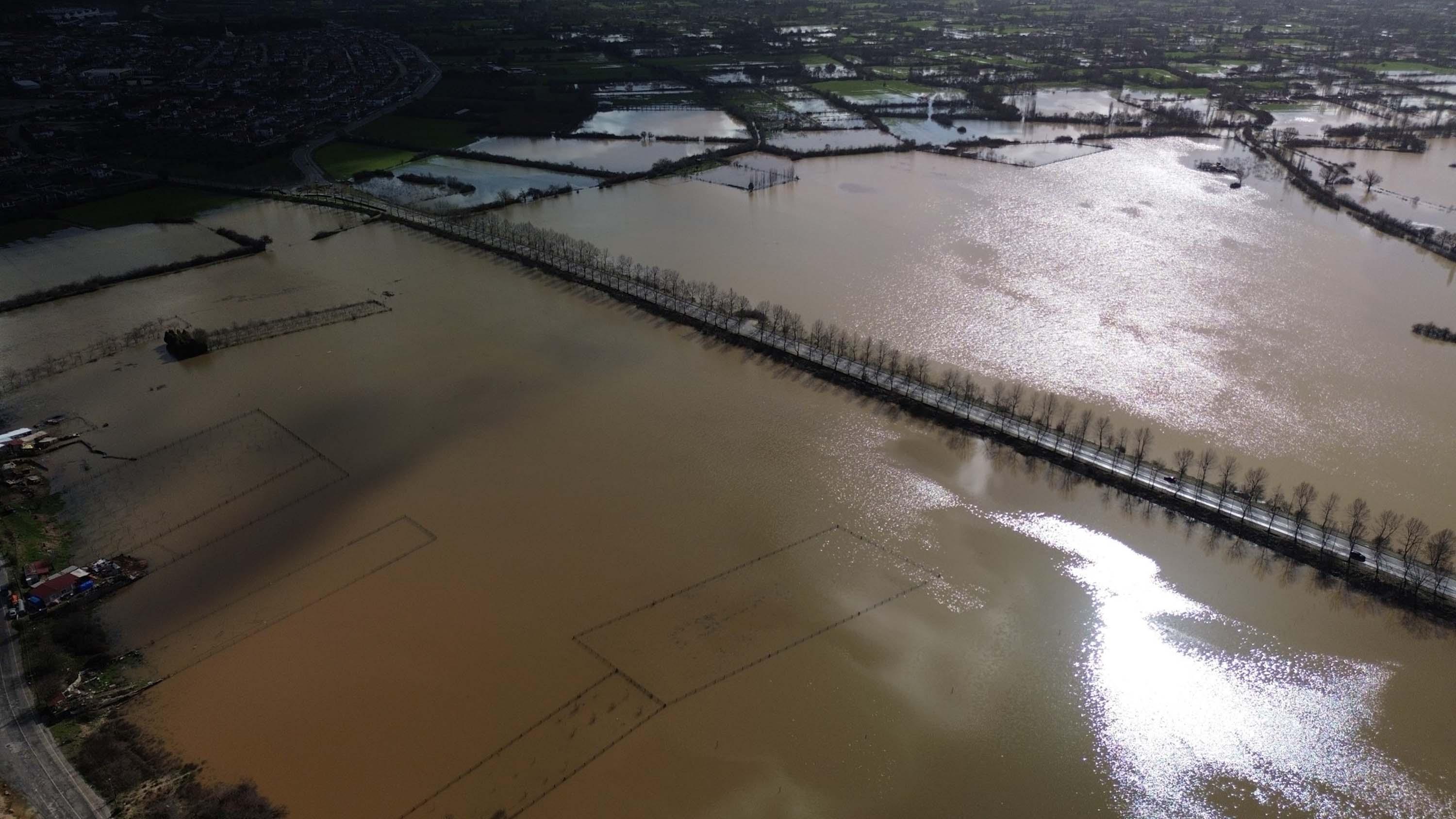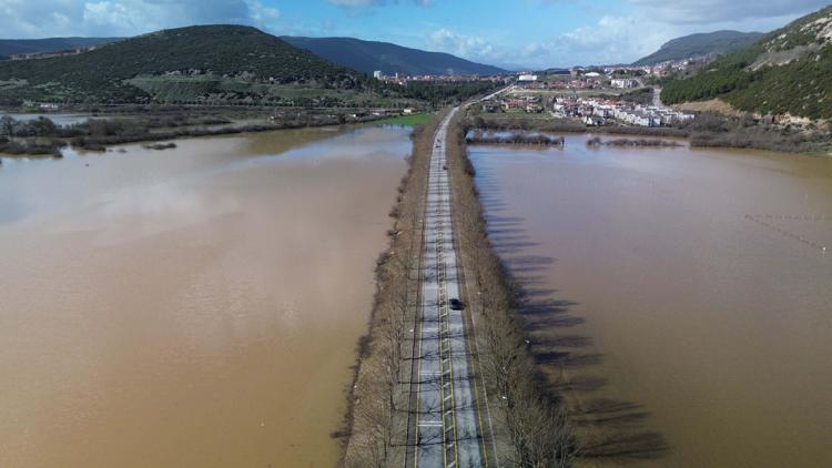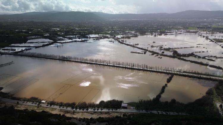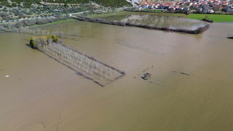 Öte yandan, su altında kalan tarım arazileri dronla görüntülendi.
