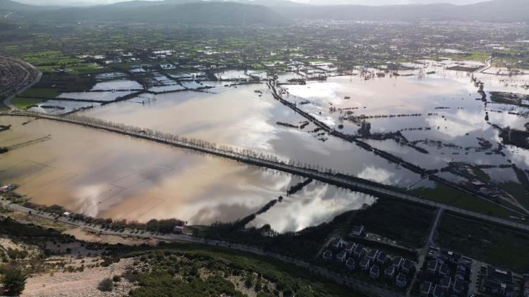 Muğla'da su altında kalan tarım arazileri dronla görüntülendi