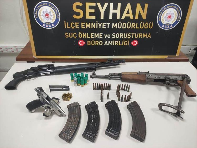 Adana'da 'mühür bozma' suçundan hakkında arama kararı olan Mustafa Y.’nin evine yapılan baskında, odunlukta bebek battaniyesine sarılı makineli ve otomatik 2 tüfek ile tabanca ele geçirildi. Silahlarla ilgili Mustafa Y.’nin üst kat komşusu Hakan S. tutuklandı.