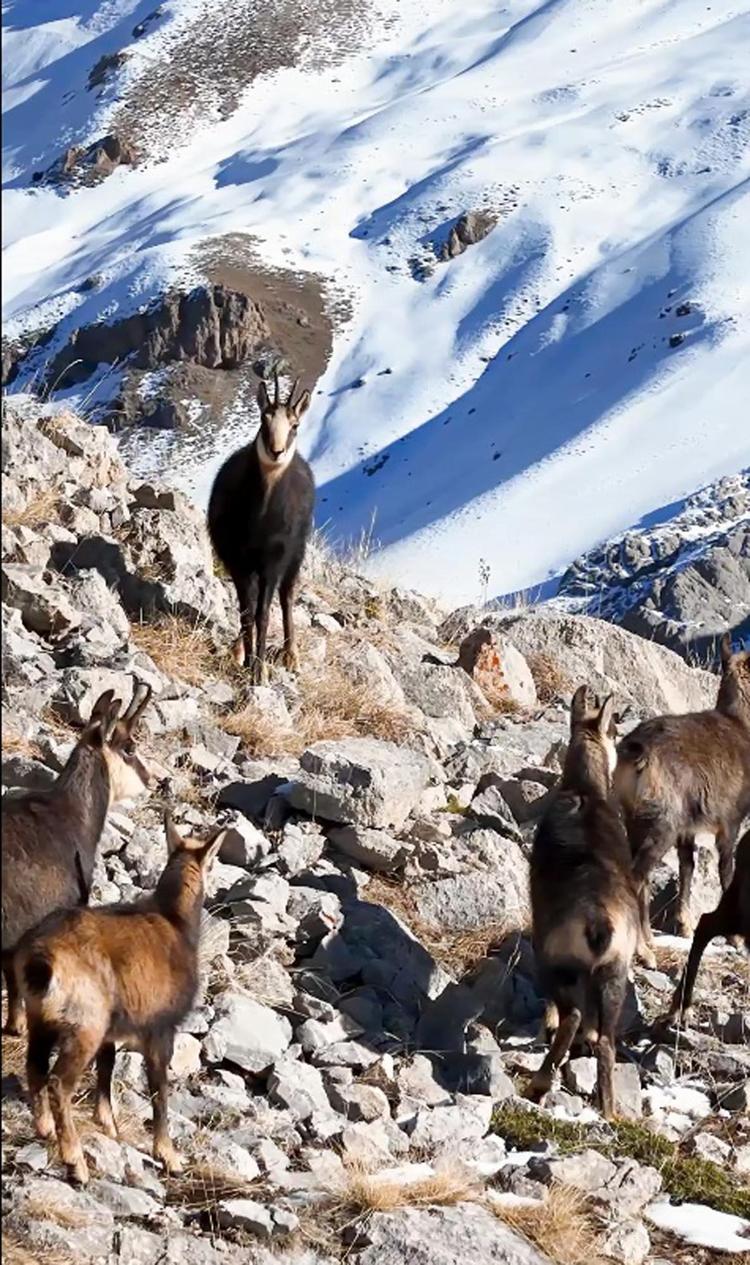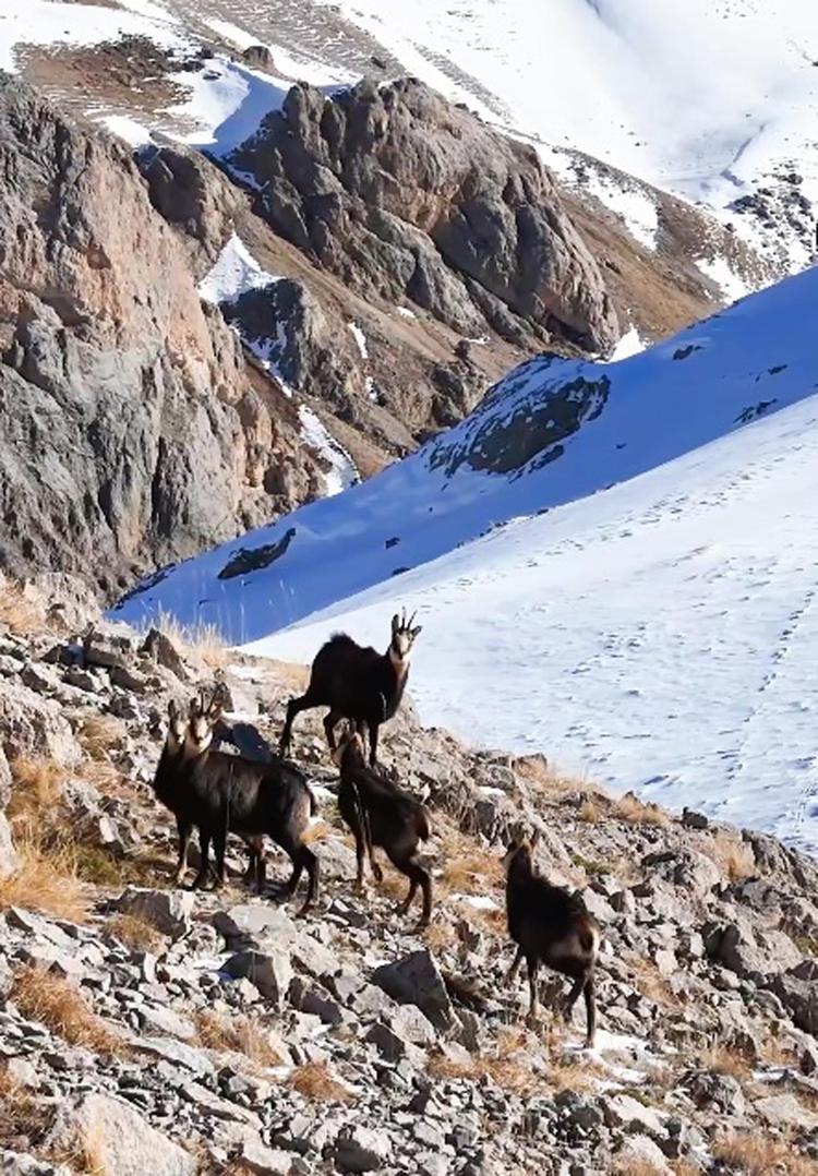 Yağan karla yüksek kesimleri beyaza bürünen Munzur Dağları’nda nesli tükenme tehlikesi altında bulunan birçok yabani hayvan objektiflere yansımaya başladı. 3 bin 300 rakımlı Munzur Dağları’nın karlı zirvesinde görünen ve zaman zaman da bin rakımlı aşağı kısımlara inen çengel boynuzlu keçiler, dronla görüntülendi.