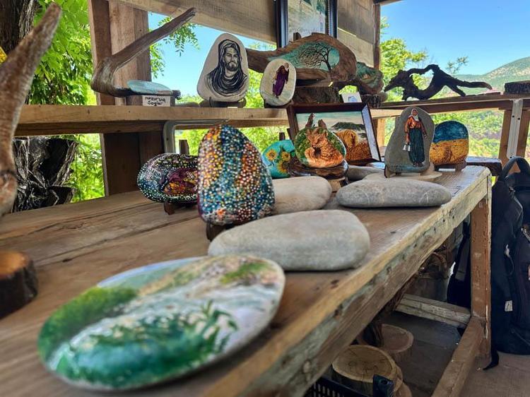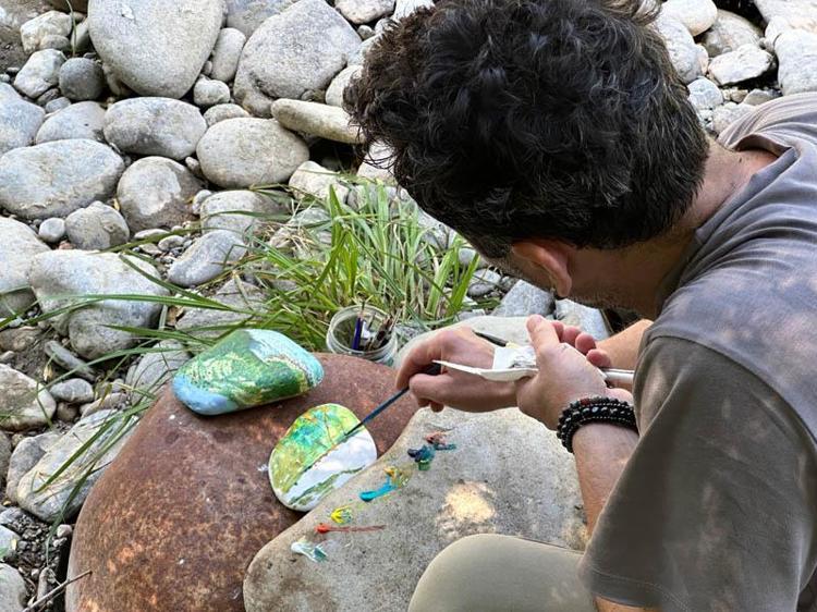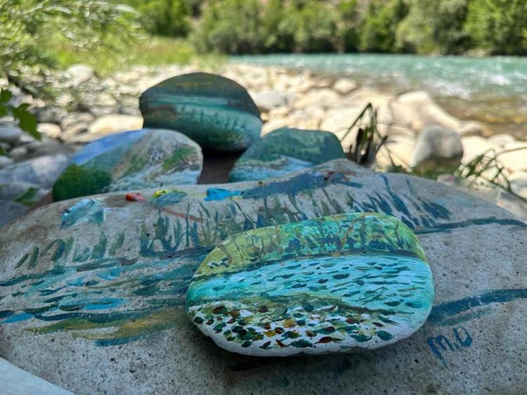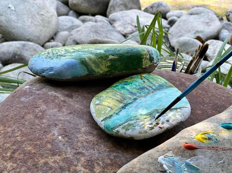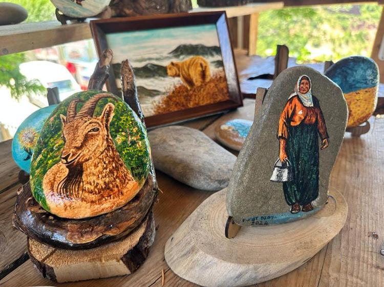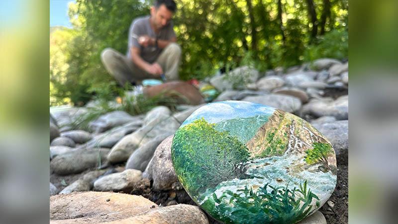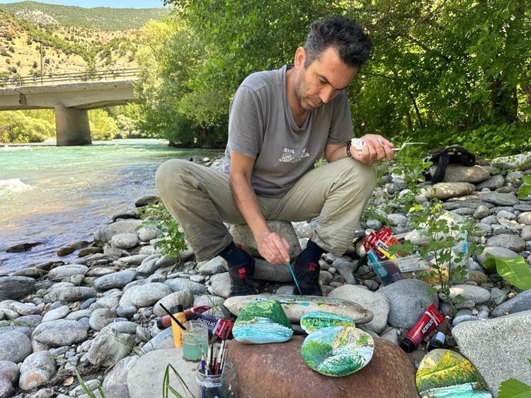 Tunceli'de, ilkokuldayken öğretmeninin yönlendirmesiyle resim yapmaya başlayan Murat Ozan (42), doğal güzellikleri, yaban hayatı zenginliği ve endemik tür çeşitliliğiyle ön plana çıkan Munzur Vadisi Milli Parkı’ndan geçen Munzur Nehri kenarında özenle topladığı taşları tuval olarak kullanıyor.
