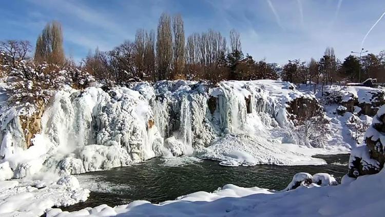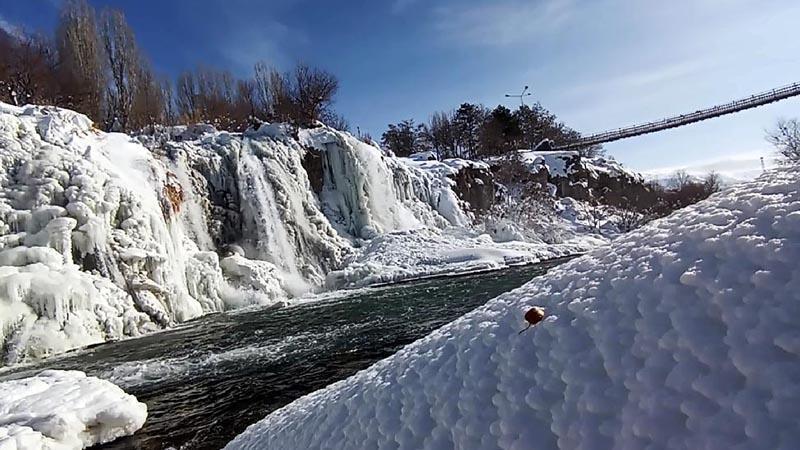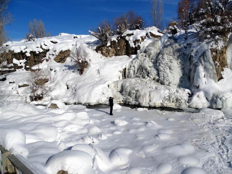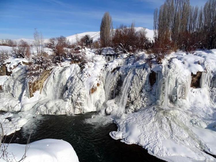 Van'ın Muradiye ilçesindeki Muradiye Şelalesi, dondurucu soğukların etkisiyle kısmen buz tuttu. Yılın her mevsimi farklı güzelliğe bürünen şelale, kış aylarında oluşan manzarasıyla da ziyaretçilerini kendine hayran bıraktı.