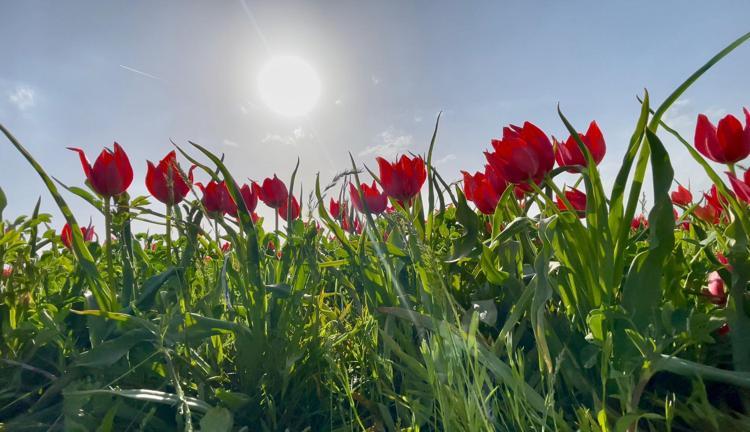 İlkbaharda sadece nisan sonu ve mayıs ayının ilk haftalarında görülen laleler, Muş Ovası'nı kırmızıya boyadı.