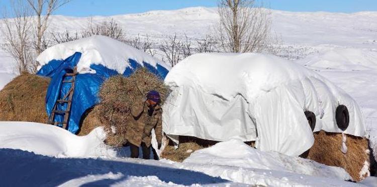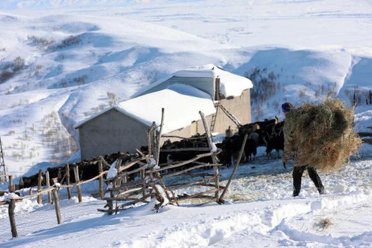 Otları yaklaşık 100 metre sırtımızda taşıyarak, getirip kar üzerinde hayvanlara yediriyoruz. Hayvancılık gerçekten çok zor bir iş" dedi. Hayvanlarını kış mevsimi boyunca kar üzerinde yemleyerek, ihtiyaçlarını karşıladıklarını belirten İsmail Yaşlak ise "Kışın çilemiz hep aynı. Hayvancılık zaten zor, bir de kara kış ile mücadele etmek belimizi büküyor. Ama yapacak bir şey yok. Başa gelen çekilir" diye konuştu.