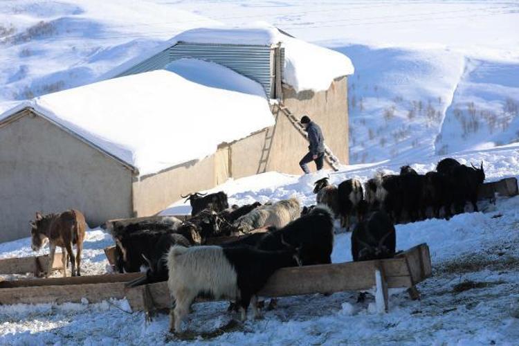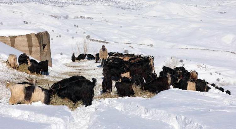 Kış mevsiminin soğuk ve sert geçtiği Muş'ta, besiciler çetin şartlara rağmen hayvanların bakımını ihmal etmiyor. Zor şartlar altında mücadele veren besiciler, keçi ve koyunlarını kar örtüsünün üzerine serdikleri otlarla yemliyor, ihtiyaçlarını karşılıyor.