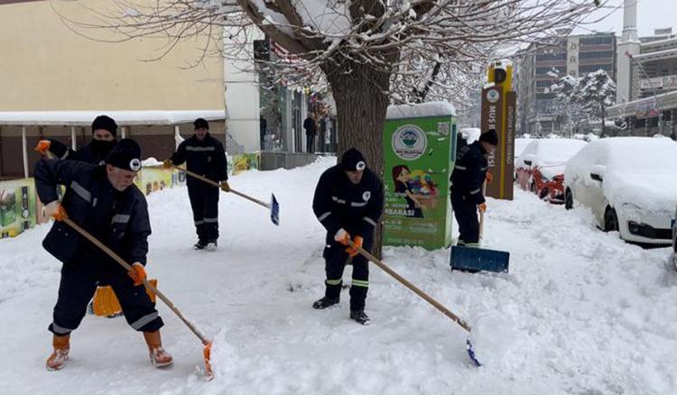 İş makineleri 17 mahallede yolları açarken, kar küreme ekipleri de kaldırımları temizledi. Ekipler, şehir içi yollarda buzlanmayı önlemek için çalışma da yaptı.