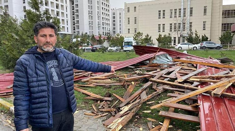 Oturduğu sitenin çatısının büyük bir gürültüyle uçarak çevreye savrulduğunu anlatan Turan Akın, "Son bir saat içerisinde etkisini artıran şiddetli rüzgar nedeniyle, binamızın çatısı uçtu. Çatıların uçma anında neredeyse 2-3 tane insan yaralanıyordu. Hastane bahçesine düştü. Ön tarafa da düşmüş o yüzden tehlike arz ediyor" dedi.