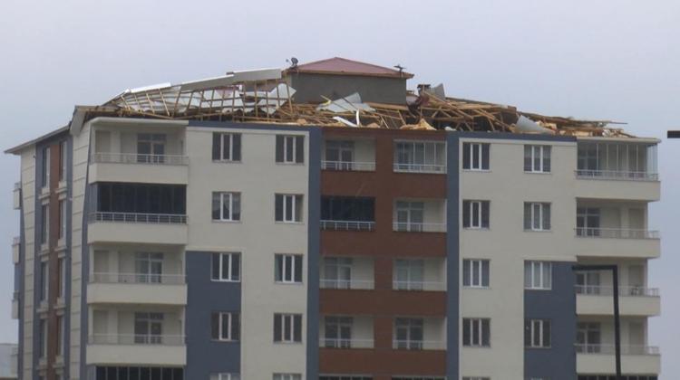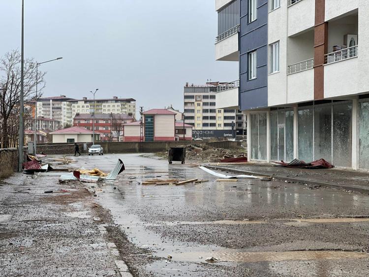 Bina çatılarından uçan sac parçaları, tahta ve çiviler çevreye savrulurken, ev ve iş yerlerinin camlarında kırıklara neden oldu.