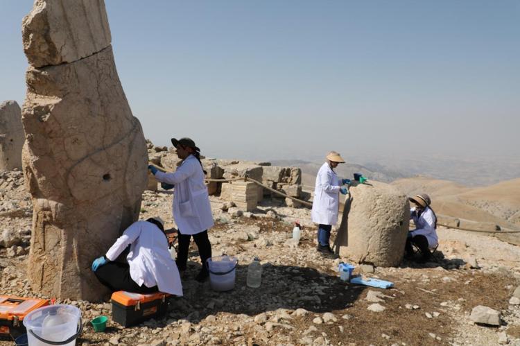 Doğu terasında yer alan Apollon heykelinin başlık kısmındaki, geçmişte farklı gruplar tarafından yapıştırılmış ve sonrasında ayrılmış olan parça, bu kez kalıcı şekilde birleştirildi. Böylece Nemrut’un simge eserlerinden biri yeniden bütünlüğüne kavuştu. Nemrut Dağı Tümülüsü'nün dev heykelleri için planlanan sağlamlaştırma projesi, beş yıllık bir yol haritasıyla ilerleyecek. Bakanlığın 2022 yılında başlattığı deneme çalışmaları ve 2023-2024 yıllarındaki kontrollerin ardından, bu yaz başlayan uygulamalar Nemrut'un geleceğini güvence altına alacak. (DHA)