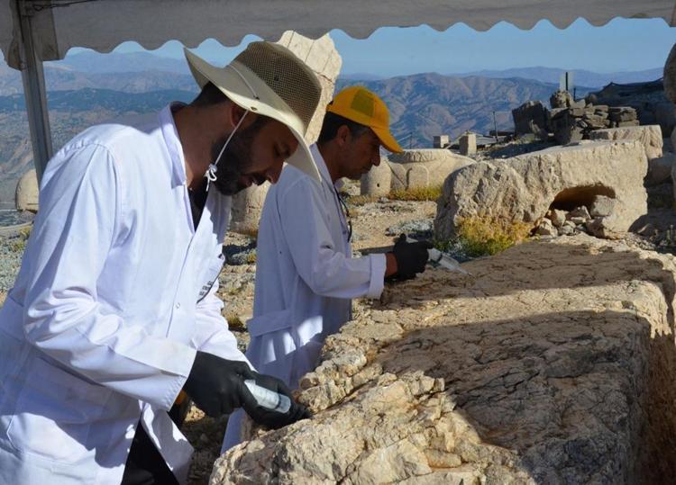 Bakanlıktan yapılan açıklamaya göre; 7-27 Temmuz 2025 tarihleri arasında 3 haftalık yoğun bir çalışmayla doğu ve batı teraslarındaki en kritik eserler üzerinde uygulamalar yapıldı. Adıyaman Müze Müdürlüğü'nden bir uzman ile altı restoratörün katıldığı çalışmalarda, Antiochos ve Kartal başları ile batı terasındaki iki kumtaşı rölyef üzerinde kapsamlı müdahaleler gerçekleştirildi. Kireçtaşı eserlerde mekanik ve biyolojik temizlikten sonra nano taneli kalsiyum hidroksit çözeltisi kullanılarak taşın bünyesi güçlendirildi. Çatlakların dolgu işlemleri ise hidrolik kireç bağlayıcı estetik harç ile yapıldı. Kumtaşı eserlerde ise nano dağılımlı etil silikat çözeltisiyle sağlamlaştırma sağlandı ve suyun taş içine işlemesi engellendi.