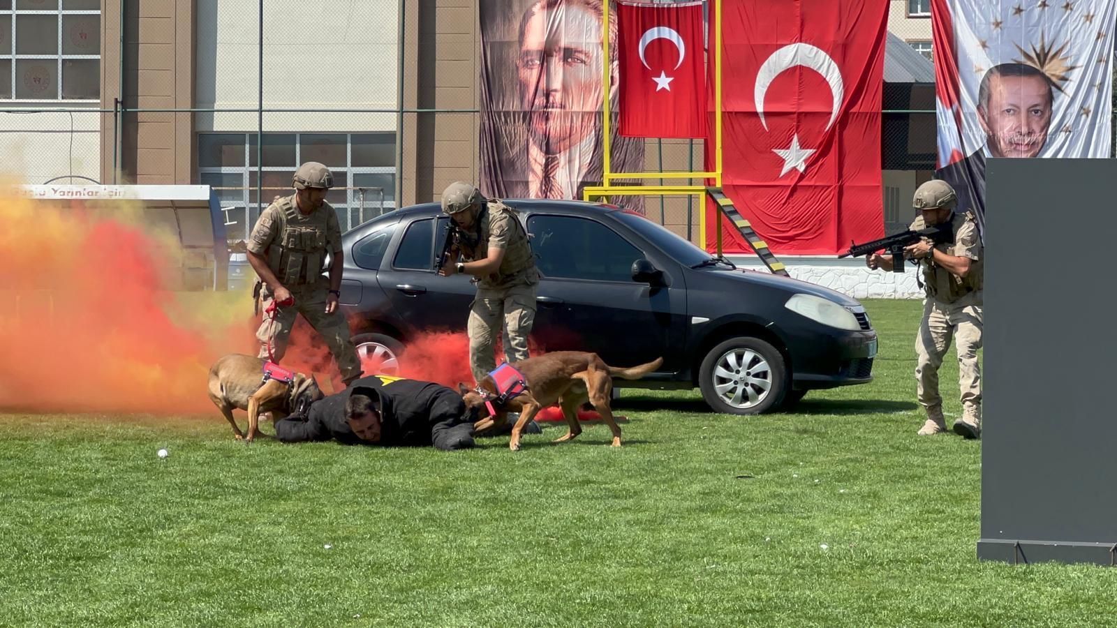 Tören alanında, eğitimli 3 farklı köpek tarafından rehine kurtarma, bomba arama, yasaklı madde arama, temel itaat ve engel parkuru çalışması sergilendi.