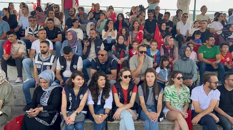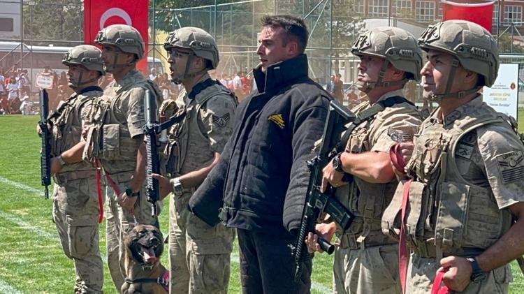 JAKEM köpeklerinin eğitmenleri eşliğinde yaptığı gösteri, töreni izleyenlerden ilgi topladı.