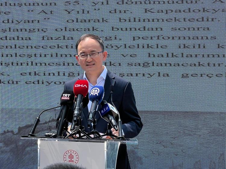 Çin’in Ankara Büyükelçisi Jiang Xuebin ise Kültür ve Turizm Bakanlığı ve Çin Halk Cumhuriyeti Ankara Büyükelçiliği tarafından ortaklaşa düzenlenen 'Nevşehir Kültür Yolu Festivali' kapsamında gerçekleştirilen 'Çin Kaligrafi ve Resim Sergisi'nin açılışına katılmaktan büyük memnuniyet duyduğunu ifade etti. Büyükelçi Jiang Xuebin, Türkiye ile Çin arasındaki ilişkilerin her alanda geliştiğine dikkat çekerek, "Çin ve Türkiye, Asya kıtasının doğu ve batı ucunda yer almaktadır. Bin yıllık İpek Yolu, iki ülkeyi birbirine sıkı sıkıya bağlamıştır. Son yıllarda, Çin Devlet Başkanı Sayın Xi Jinping ve Türkiye Cumhurbaşkanı Recep Tayyip Erdoğan'ın stratejik liderliğinde Çin-Türkiye ilişkileri gelişme eğilimini korumakta, beşeri münasebetlerimiz sürekli olarak çoğalmakta, kültürel iş birliğimiz derinleşmekte, kültürel miraslar, gösteri sanatı gruplarının karşılıklı ziyaretleri ve turizm tanıtımı gibi birçok alanda iş birliği gerçekleştirilmektedir" diye konuştu.