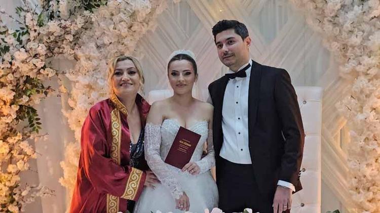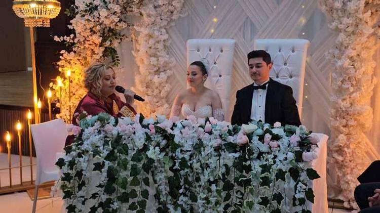 Kilimli ilçesinde bağlı Muslu beldesinde Belediye Sosyal Tesisleri’nde dün akşam saatlerinde davetliler, İldem Altaytaş ve Yüksel Karaman’ın nikah ve düğünü için bir araya geldi. İldem ve Yüksel çiftinin nikahını kıymak için sahneye Muslu Belediyesi’nin 20 yıllık nikah memuru gelinin annesi Sibel Altaytaş çıktı. Davetlileri selamlayan Sibel Altaytaş, “Çok teşekkür ederim hepinize, bilmiyorum. Kızımın nikahını kıymak bana nasip oldu.