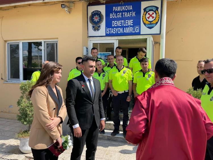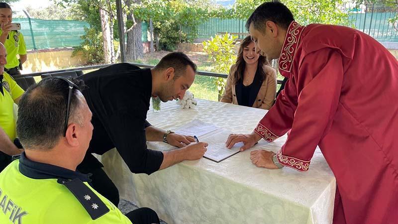 Nikahları görev yaptıkları bölge trafik istasyonunda kıyıldı