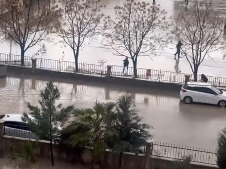 Mardin’in Nusaybin ilçesinde etkili olan sağanak yağış nedeniyle birçok cadde ve sokak suyla dolarken, bazı okul bahçeleri ile binaların bodrum katlarını su bastı. Mahsur kalan öğrenciler kepçeyle taşındı.
