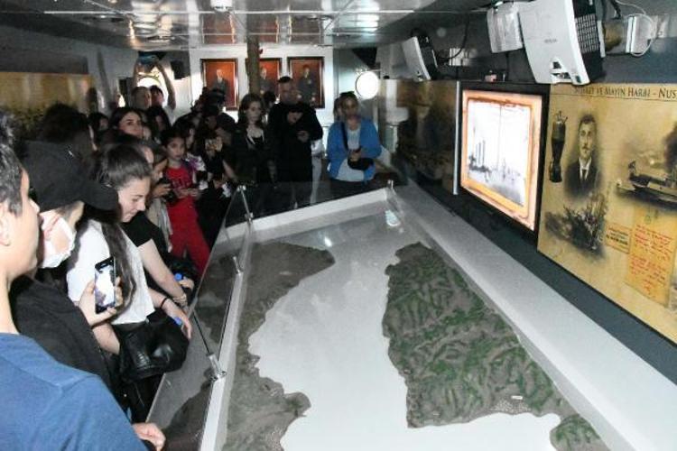 Gemiyi ailesiyle birlikte gezen lise öğrencisi Evranur Bağcı ise tarihi bir kez daha yaşadığını belirterek, "Burada tarihi bir kez daha yaşadım. O günlere dönmüş gibi olduk. Gerçekten çok güzeldi. İçeriyi gezdik gerçekten birebir aynısı. Çok duygulandım, sunumlar vardı" diye konuştu.
