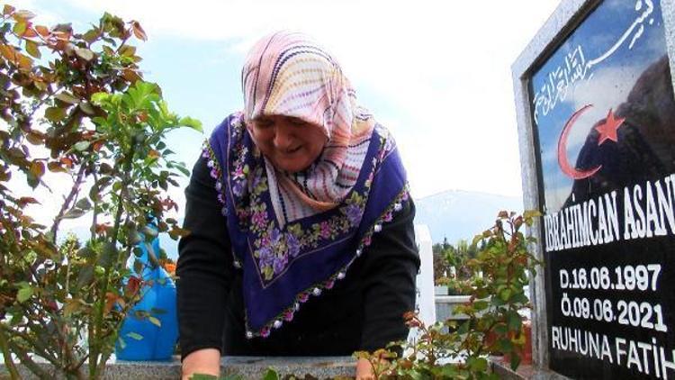 Sen burada yatmıyor muşsun neredesin sen oğlum? 30 Mart’ta Bursa Adliyesi’nde deprem oldu, adalet mülkün temeli değil sen onun altında kaldın. 30 Mart’ta bir kere daha öldün sen annem” dedi.