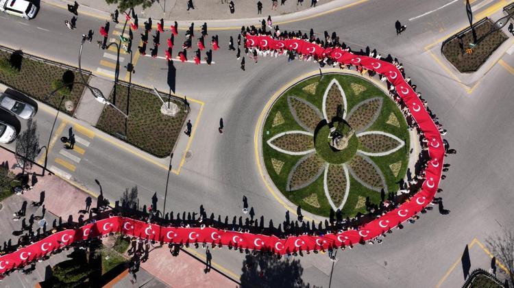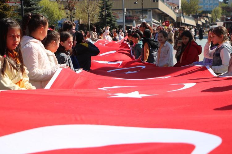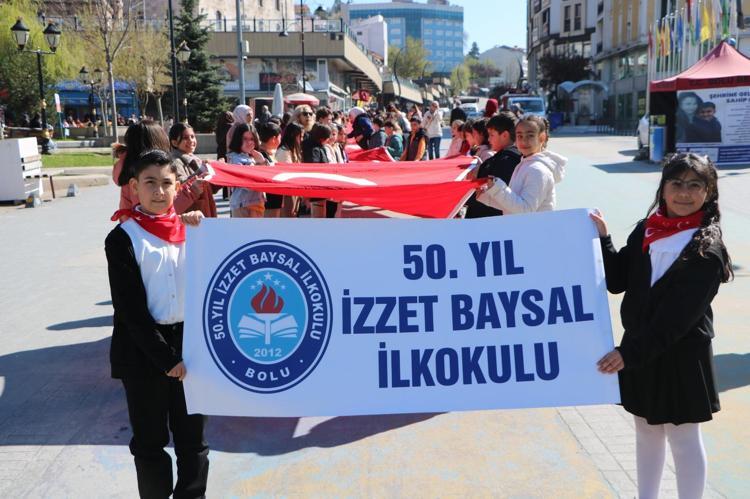 Bolu’da yaklaşık 500 ilkokul öğrencisi, velileri ile öğretmenleriyle birlikte 23 Nisan Ulusal Egemenlik ve Çocuk Bayramı etkinlikleri kapsamında 200 metre uzunluğunda Türk bayrağı açarak kent merkezinde yürüdü. Öğrenciler, yürüyüşle aynı zamanda Kahramanmaraş ve Şanlıurfa’da 2 okulda yaşanan saldırılara da dikkat çekti.