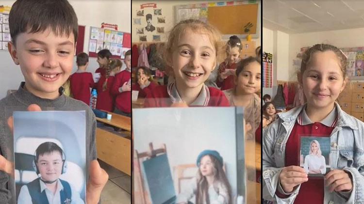 Aralarında doktor, öğretmen, mühendis, subay, pilot, astronot, sanatçı ve futbolcu gibi mesleklerde kendi fotoğraflarını gören öğrenciler, sürpriz karşısında heyecanlandı. Öğrencilerin mutlu olduğu anlara ait görüntüler de paylaşıldığı sosyal medyada ilgi toplayıp, binlerce beğeni kazandı.