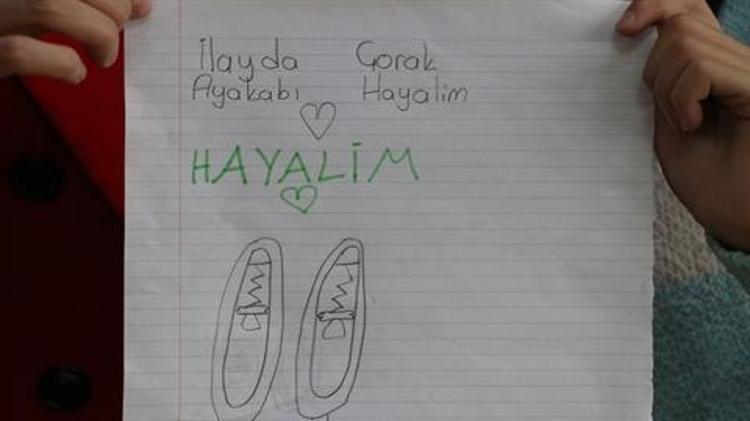 Dezavantajlı öğrencilerin ağırlıkta olduğu Turgut Özal Ortaokulu’nda bir grup öğretmen, bir öğrencinin doğum gününü pastayla kutlama hayali kurduğunu söylemesi üzerine 'Minik Hayallerden Kocaman Mutluluklara' projesini başlattı. Proje kapsamında öğrenciler hayallerini kağıtlara çizdi. Şimdiye kadar 20 öğrencinin oyuncak ayı, akıllı saat ve Atakule gezisi gibi hayalleri öğretmenler ve okul yönetiminin de desteğiyle gerçekleştirildi. Hataylı depremzede İlayda Çorak da proje kapsamında kağıda ayakkabı çizdi. Öğretmenlerin aldığı spor ayakkabı, İlçe Milli Eğitim Müdürü Mustafa Kılıçgil tarafından İlayda'ya teslim edildi. İlayda Çorak, büyük mutluluk yaşadı.
