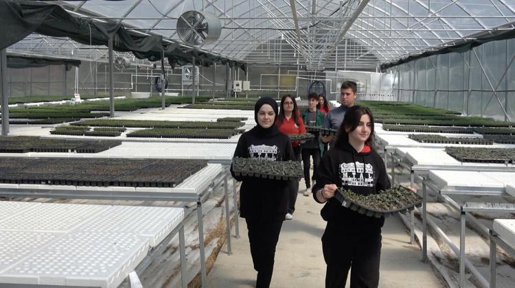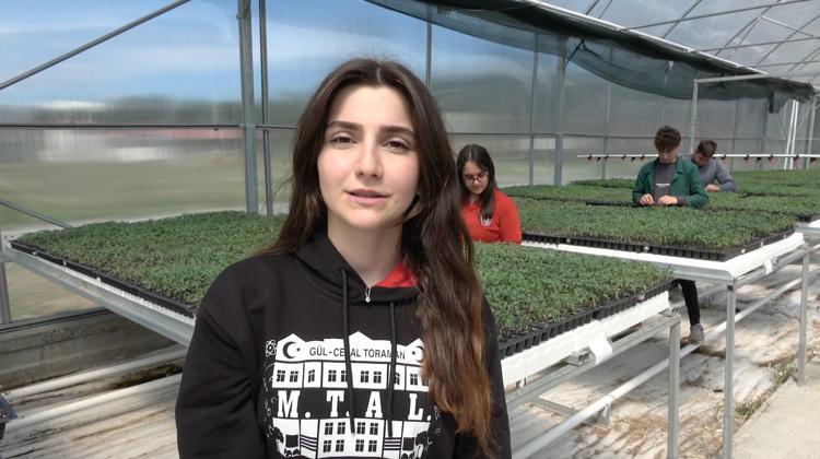 Derste öğrendikleri bilgileri serada uyguladıklarını belirten 11'inci sınıf öğrencisi Zarina Mevlütoğulları, "Tohum halinde ekip büyüyene kadar bekledik. Gerekli işlemi yaptıktan sonra fideleri seramıza taşıdık. Fideler biraz daha filizlendikten sonra satışa sunulacak. Fidelerimiz okulumuza katkı sağlayacak" dedi.