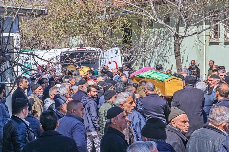 Fırat Üniversitesi Hastanesi'nin morgunda otopsi işlemleri tamamlanan ailenin cenazeleri, yakınları tarafından teslim alınarak Salı Baba Camii'ne getirildi. Yakınları fenalık geçirirken, aile bireylerinin tabutları yan yana konulup cenaze kılındı.