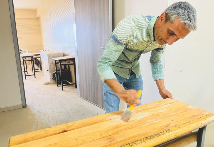 Öğretmenler okulu boyayıp, sıraları yeniliyor