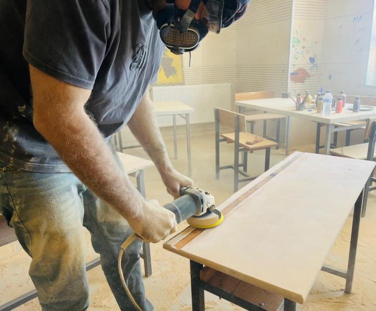 Boğaziçi Mahallesi’nde bulunan Boğaziçi Atatürk Anadolu Lisesi Müdürü Abdullah Kalkan, okulu 2025-2026 eğitim öğretim yılına hazırlamak için harekete geçti. Boya ve ahşap malzemelerin teminini yapan Kalkan, seminer dönemi nedeniyle okulda bulunan öğretmenlerle birlikte kolları sıvadı. Okul müdürü, öğretmen ve görevliler ellerine fırçaları alarak 20 derslikli okulun koridorlarını, sınıflarını ve kapılarını boyadı, deforme olmuş sıra ve masaların tadilatlarını yaptı.