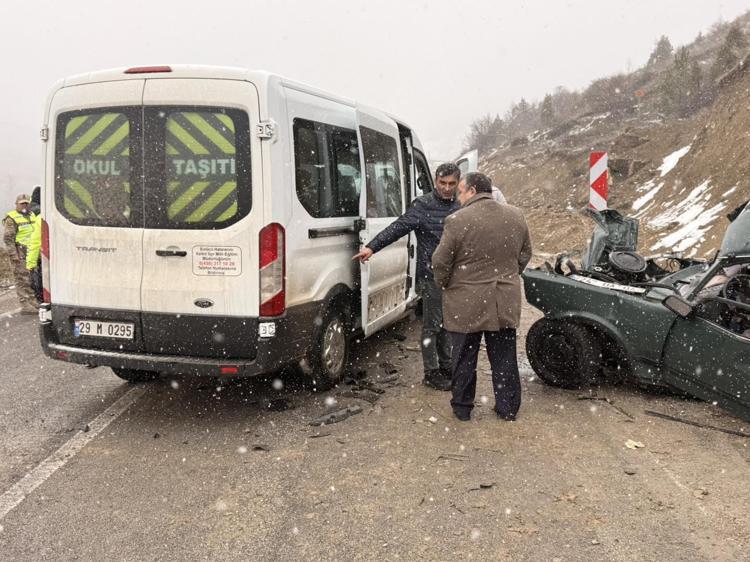 Yeniyol 75’inci Yıl İmam Hatip Ortaokulu öğretmenlerini taşıyan Ali D. idaresindeki 29 M 0295 plakalı servis minibüsü, karşı yönden ilçe merkezine seyreden Nafiz A.’nın kulandığı 24 UA 043 plakalı otomobil ile kafa kafaya çarpıştı.