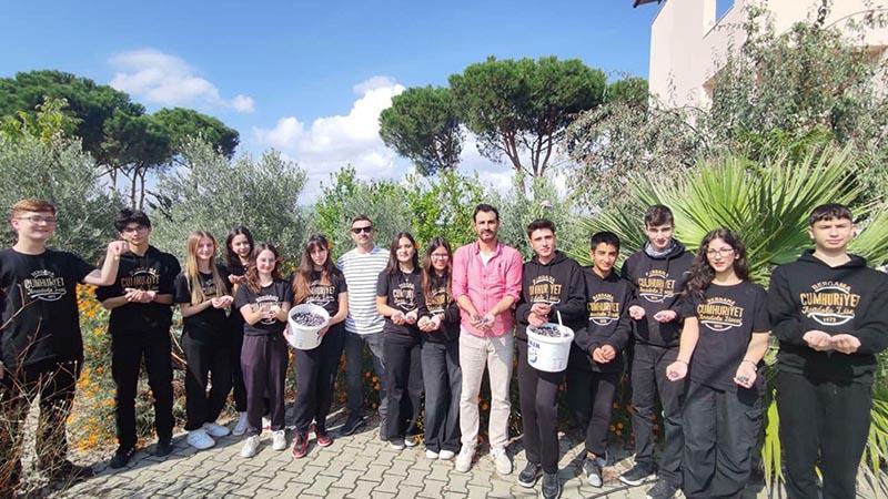 Milli Eğitim Bakanlığı'nın 2025-2026 eğitim öğretim yılı için başlattığı 'Yeşil Vatan-Benim Okulum Geleceğe Çare' kampanyası, İzmir Bergama'da Cumhuriyet Anadolu Lisesi'nde uygulamalı çevre ve sürdürülebilirlik projesiyle hayat buldu. Lise öğrencileri ve öğretmenler, 5 yıl önce okul bahçesine dikilen zeytin ağaçlarının hasadını gerçekleştirdi. Öğrenciler, topladıkları zeytinleri kışın kahvaltılarında tüketmek için kurdu.